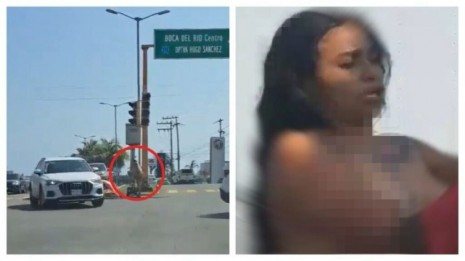 Mujer se desnuda y se cambia de ropa en pleno crucero de avenida en Boca del Río