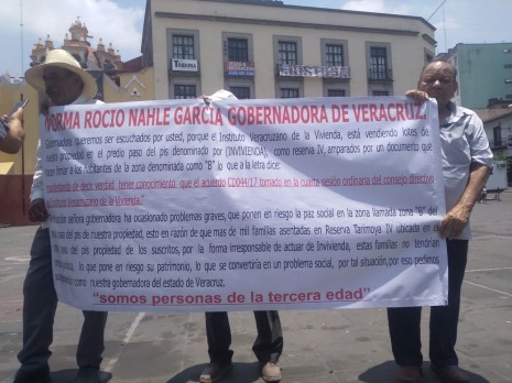 Plantón permanente de Jubilados y pensionados en plaza Lerdo, exigen pago de 648 millones de pesos del seguro institucional, que Cuitláhuac García desapareció en 2021