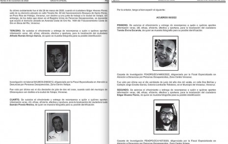 FGE ofre recompensa por desaparecidos en Misantla, Xalapa, Veracruz e Ixtaczoquitlán