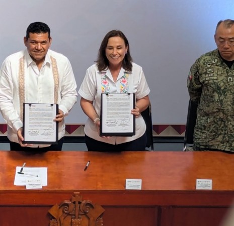 Gobernadora Roció Nahle firma convenio de colaboración en seguridad, con Javier May gobernador de Tabasco