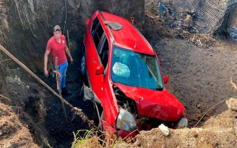 Camioneta cayó en una zanja cerca de Xalapa; ocupantes escaparon