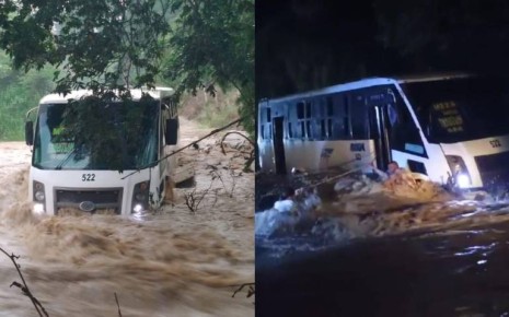 Quedan atrapados en un arroyo dentro de un autobús proveniente de Veracruz
