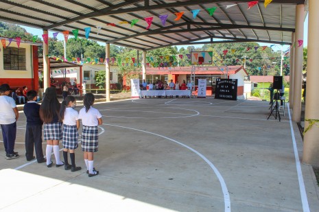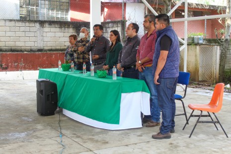 Entrega Raymundo Andrade, cancha techada en primaria de la localidad Cuahutémoc