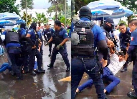 Policías desalojan a golpes y macanazos a vendedores ambulantes en Coatepec