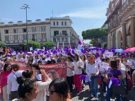 Marchan mujeres en Xalapa, exigen alto a presunta violencia de género contra la candidata Rocío Nahle