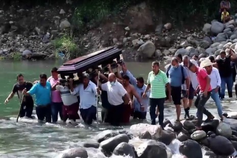 Habitantes de Misantla cruzan río con ataúd en los hombros por falta de puente