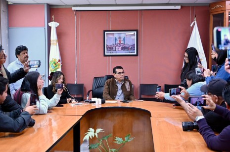 Estudiantes de la Facultad de derecho y representantes estudiantiles de la Universidad Veracruzana, en contra de imposición de clases virtuales