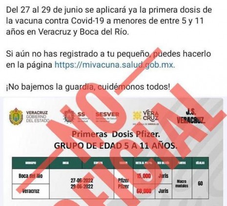 Alertan por mensajes falsos sobre vacunación anticovid para menores de 5-11 años