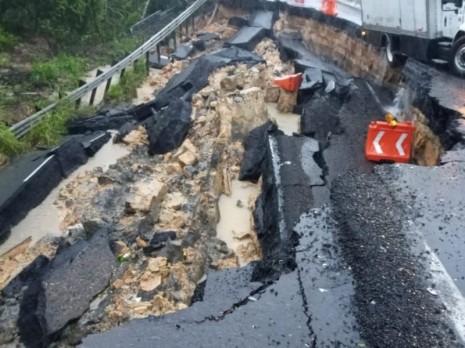 Socavón complica el avance en la autopista Nuevo Teapa-Cosoleacaque, Veracruz