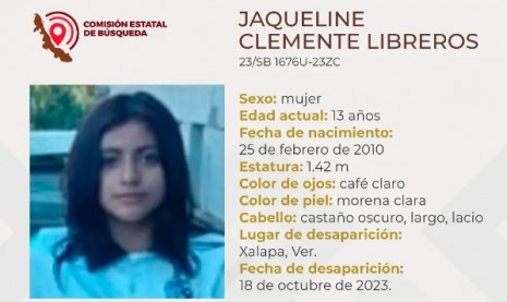 Desaparece la menor Jaqueline Clemente, en Xalapa