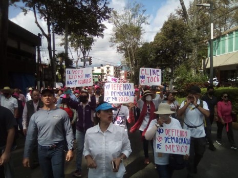 Con el grito el INE no se toca, Xalapeños, activistas, empresarios y ex funcionarios, marchan a favor del INE