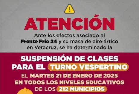 Se suspenden clases en turno vespertino de todo el estado