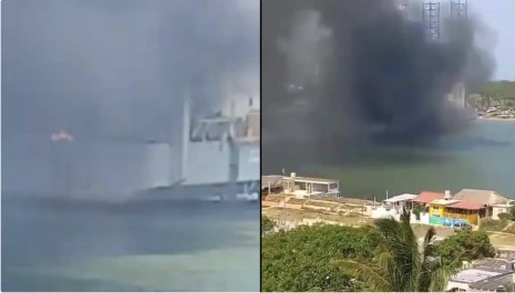 Incendio consume plataforma de Pemex en Alvarado, Veracruz