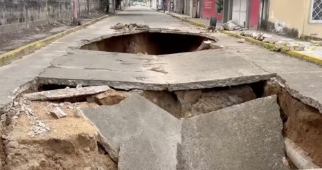 Socavón deja a la intemperie ductos de descarga de Pemex en Veracruz