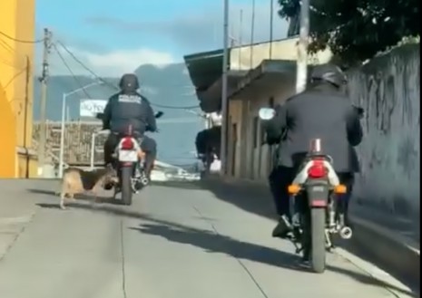 Policía arrastra a perrito en su moto en Jalacingo, Veracruz