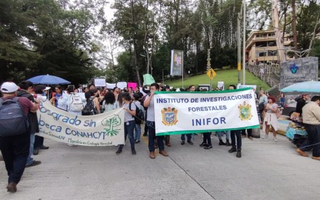 Por recorte a becas de Conahcyt, estudiantes de posgrado protestan en Xalapa
