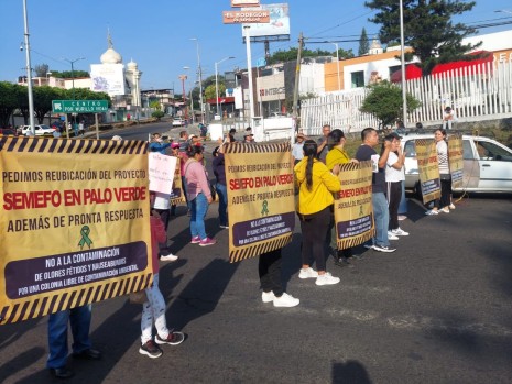 Vecinos del Panteón Palo Verde protestan para exigir la reubicación del Semefo