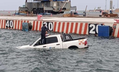 Camioneta del SAT cayó al mar en el puerto de Veracruz; autoridades investigan