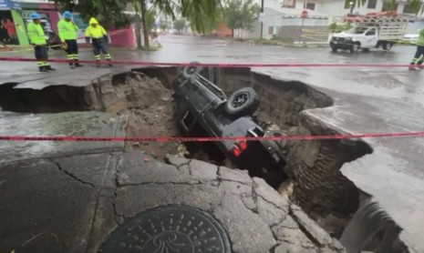 Lluvias abren socavón en el puerto de Veracruz