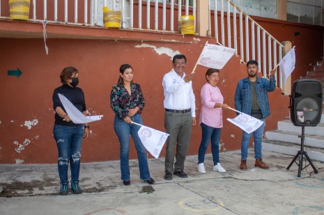 Raymundo Andrade, da banderazo de inicio de la construcción de domo en la Escuela Primaria Aquiles Serdán
