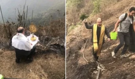 Con misa y agua bendita, rezan por fin de incendios forestales y estiaje en Veracruz