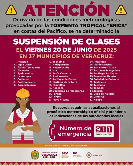 Suspenden clases en 37 municipios este viernes por efectos de Erick