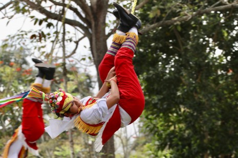 Por andar estorbando, lo "atropella" un volador de Papantla